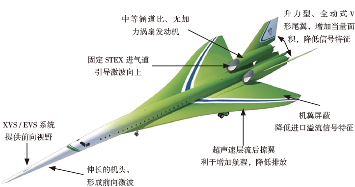 为满足以上需求,洛马公司采用了4项关键的使能技术:声爆塑形(shaped-boom)设计、低噪声集成推进系统、超声速自然层流(NLF)后掠翼以及座舱内可视的外部视景系统(XVS)。