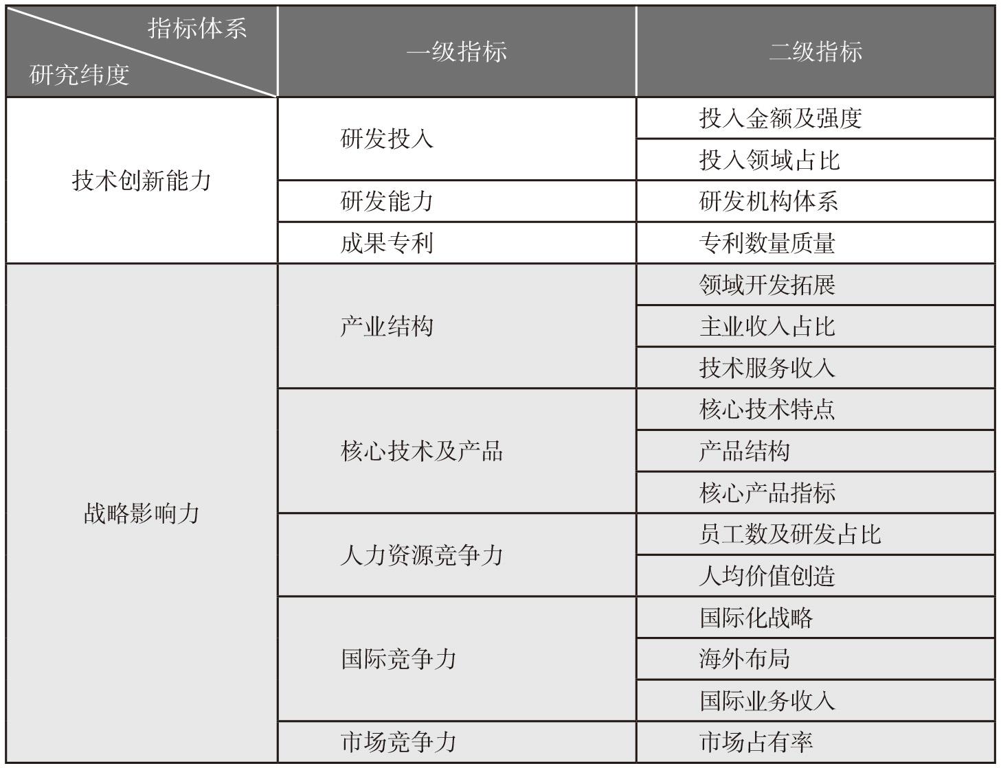 对标研究的核心内涵是确定指标体系,即“比什么”。指标体系要体现行业特征,兼具科学性、系统性和可操作性。随着智能智慧化新业态的科技革命和产业革命发展,以及前沿颠覆性技术的出现,航空发动机企业敏锐地觉察到了历史机遇,纷纷加快发展战略、发展模式和产业布局调整步伐,注重在技术创新能力和战略影响力方面深耕布局运作,不断增强企业核心竞争力。